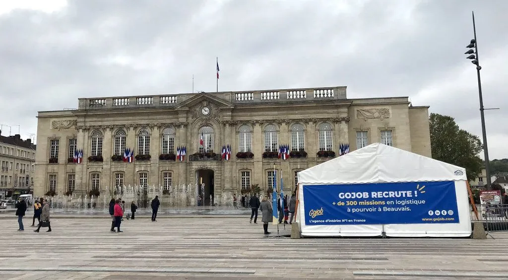Lorsque Gojob s’installe sur la place principale de la ville de Beauvais pour faire une session de recrutement, cela ne passe pas inaperçu.