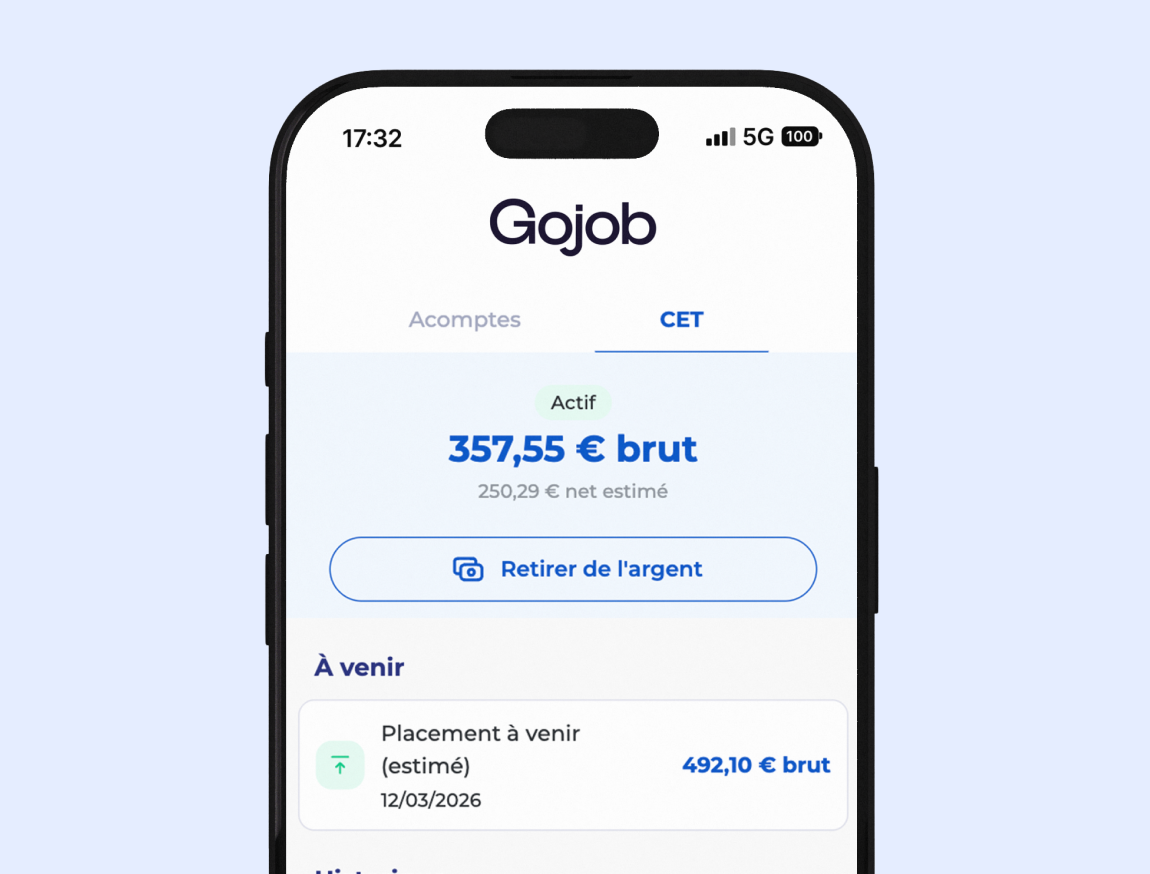 Gojob vous verse des intérêts tous les mois sur une base de taux à 10% annuel